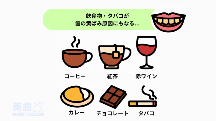 これらの飲食物を頻繁に摂取すると、歯の黄ばみが進行する可能性が高まります。